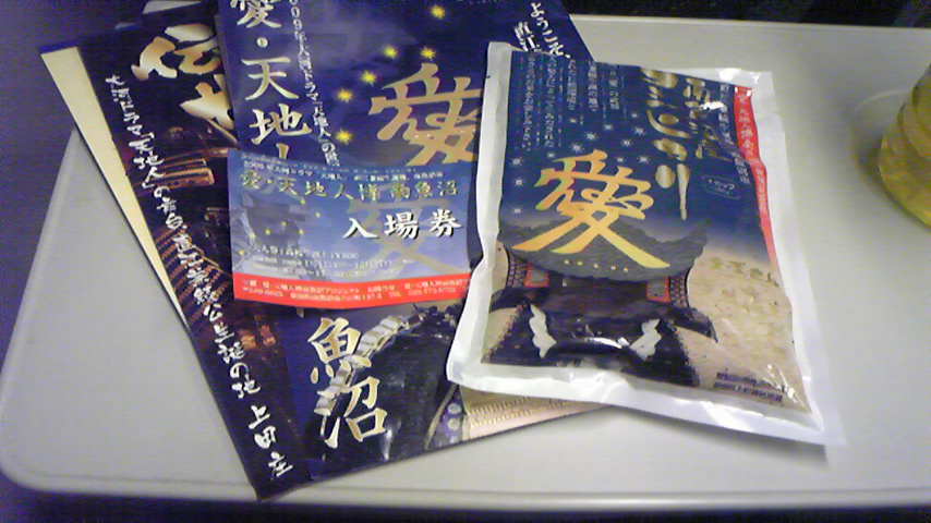 ってか 人、多っ!! 出口付近では産直のお店もでています♪ 上越のほうは何度も行ったことあるんですが こう改めてみてみると面白いですねえ。 その土地ならではのものが展示されていたり^^ 魚沼のあたりはドラマでいうと幼少期の頃のお話の舞台ですね! お米1合 もらいました!! わーい^^ 「我々も頑張りましょう!」 と 気合入ったところで、さて移動… と思ったら。 …? 誰かいるぞ? なんと! 「天地人」で兼続公の幼少期を演じた、 加藤清四郎くんを発見!!! 番組ロケ中だったようです。 すっごいかわいかったです!!♪♪ (この後ロケ車ですぐ移動しちゃったけど) こんなこともあるもんだねえ。 ちょうどお昼過ぎた頃だったので またまたメンバーから教えてもらったお店へ。 じゃーん。 キノコづくし!! 六日町インター近くにある、「雪国まいたけ」さんの レストランでご飯してきました♪ ・エリンギ、まいたけ、一口カツ ・お刺身(2種) ・キノコ入りの厚焼きタマゴ ・キノコと野菜の煮物 ・野菜とキノコの浅漬け ・具沢山のあつあつキノコ汁♪ ・キノコの味噌あえ ・ご飯 ・フルーツ 「与六御膳」、980円ナリ!! (清四郎くんつながりということでオーダーwww) 超! おなかいっぱい!! てか キノコ、旨っ!! キノコ汁は何杯でもイケます♪ やりますねえ、雪国さん…wwwwwwwww 矢板&六日町初上陸でしたけど 面白かったです♪♪ 天地人博も参考になったしね♪ 案内してくださったお頭、ありがとうございました! 長岡のイベントは残念でしたけど、 またご縁ありますように!! つーことで 来週は公演です! けんけんずも頑張っております!! ************************************************ ■上越「天地人博」広場前パフォーマンス■ *1回目の時間が早くなりました♪ ・ 6/7(日)13:00~ 14:30~ 公式キャラ「けんけんず」と一緒に写真も撮れますよ♪ ■場所:新潟県上越市「越後・天地人博」 (直江津屋台会館) *どなたも無料でご覧になれます。 *天候によって休演する場合もあります。 (休演の際は施設内にて記念撮影に応じています) 公演の様子は公式ブログでも見れます♪ http://www.tenchijin-haku.net/ ************************************************ あ、 お手伝いしてくださる方、今でも大募集中ですwwww (我輩まで連絡されたし!!) 秋までやってますんで、来れるときだけもOKです♪ 頑張るぞっと♪ PR |