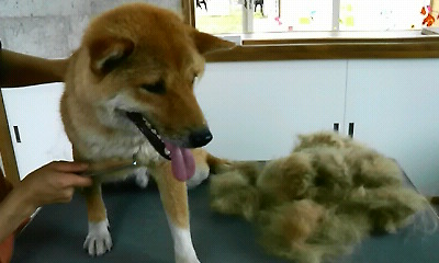 夏毛に生え変わり中の愛犬はシャンプーに行ったみたいです。